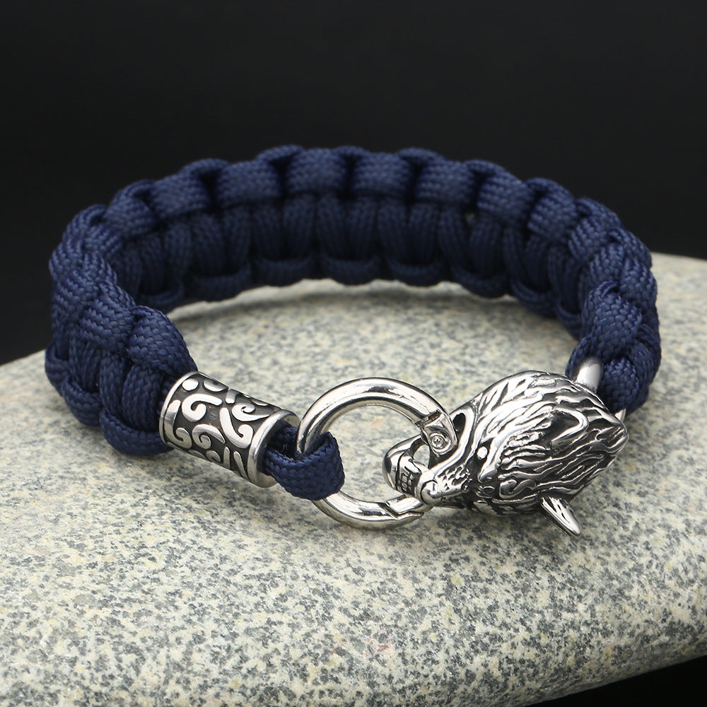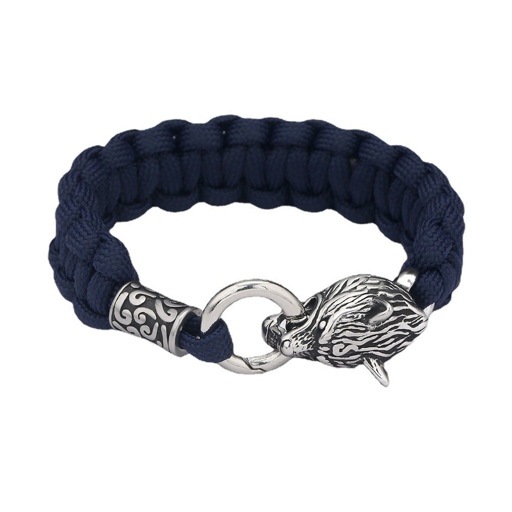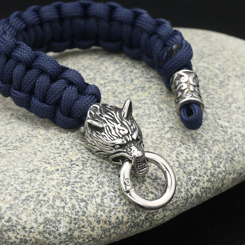 Material: umbrella rope + stainless steel wolf head + stainless steel beads